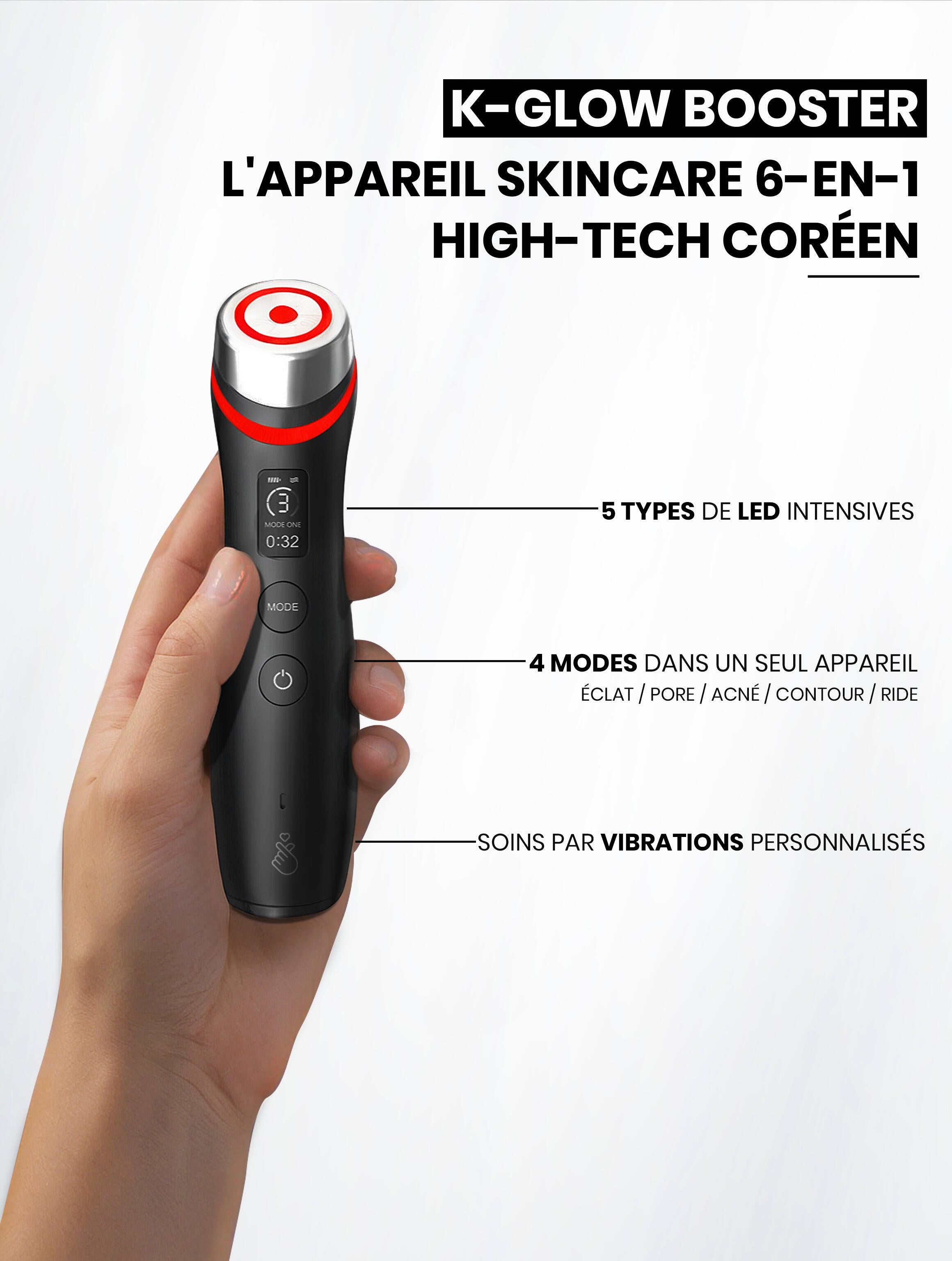 En résumé, le K-Glow Booster est l’outil parfait pour celles et ceux qui souhaitent obtenir un effet "Glass Glow Skin" sans effort, en combinant technologie moderne et soins cosmétiques.