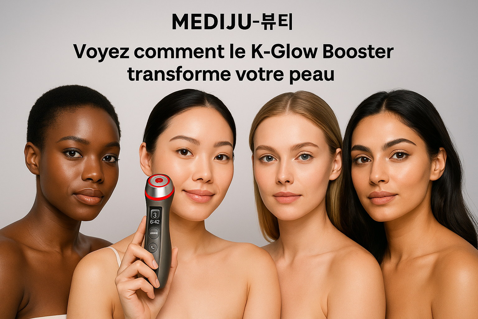 Le K-Glow Booster est un appareil de soin de la peau, spécialement conçu pour obtenir un teint lumineux et éclatant, typique de l'effet "Glass Skin" tant recherché en Corée. Son objectif principal est de fournir une peau d'apparence lisse, sans imperfections, et avec un éclat naturel de type miroir, comme si la peau reflétait la lumière.